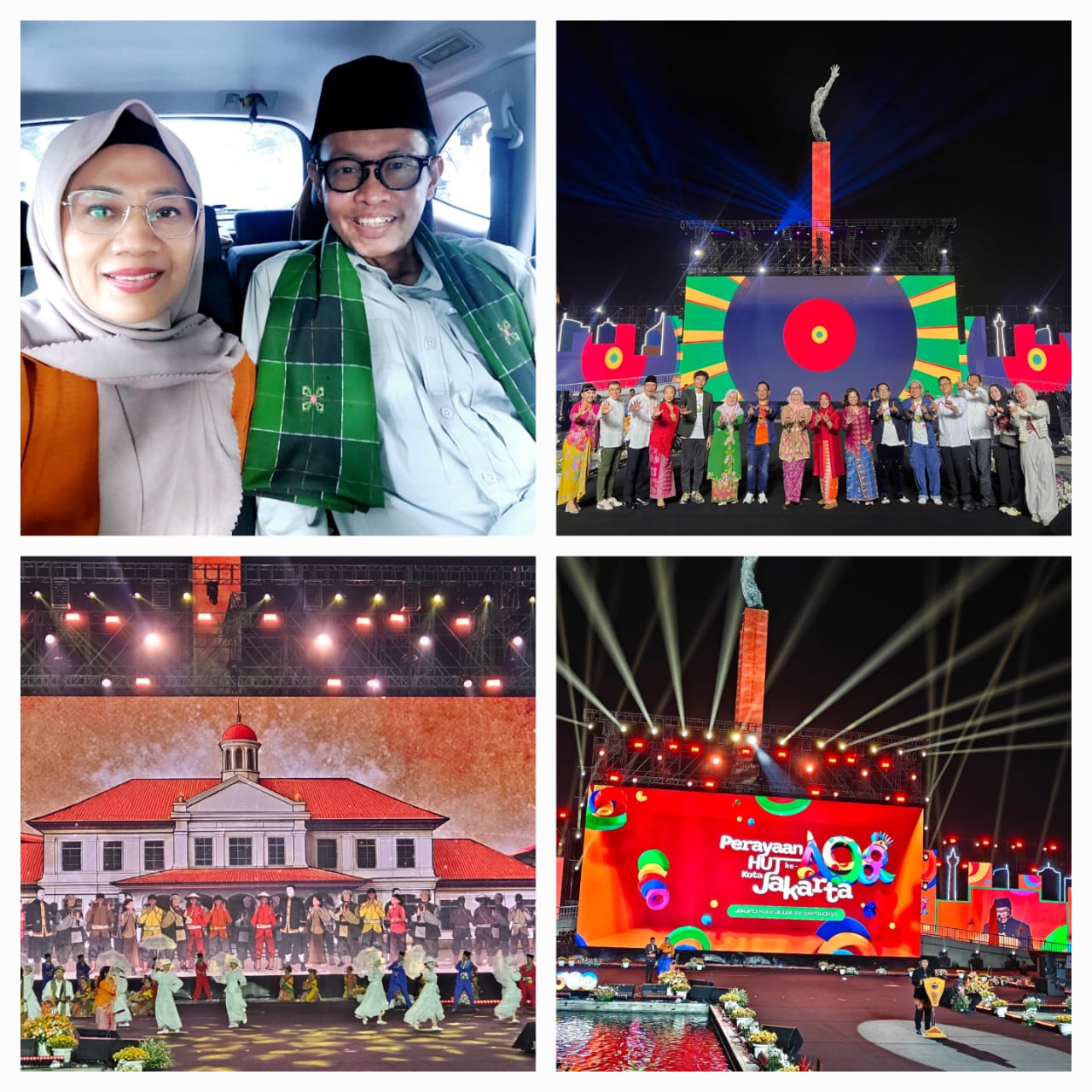 Naah, saya sempat juga hadiri malam hiburan HUT Jakarta di Lapangan Banteng, Masya Allah itu ribuan warga tumplek blek dari siang sampai jam 23, dengan tajuk One City Many Worlds diramaikan dengan hiburan musik seperti JKT48, Juicy Luicy, Diskoria, Andien, Sandhy Sandoro, Wali, Adikarya, Krotjong Toegoe, dll, dengan nuansa budaya Betawi. Ada juga cerita perjalanan dari Sunda Kelapa sampai Jakarta saat ini, banyak terobosan Bapak Gubernur seperti penataan transportasi, penataan air, bersih, rusun, penataan taman kota, pengerukan kali sungai, antisipasi banjir, serta perubahan logo dan manajemen Bank DKI yang berubah jadi Bank Jakarta.